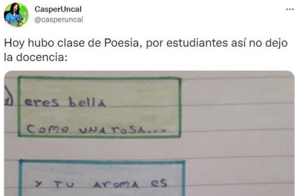 Una vez más así ha sido, en este caso cuando la cuenta @casperuncal quiso compartir en una imagen un ejercicio de poesía y la respuesta que un alumno había escrito.