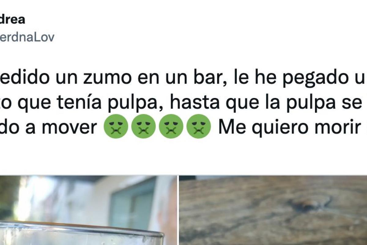 “Me he pedido un zumo en un bar, le he pegado un trago y he visto que tenía pulpa, hasta que la pulpa se ha empezado a mover Me quiero morir ahora mismo”, ha escrito la joven, junto a varios emoticonos de querer vomitar.