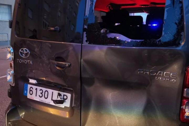 Diversos manifestantes se han abalanzado contra las furgonetas en las que viajaban Ortega Smith y Garriga, que han resultado dañadas por el lanzamiento de piedras y otros objetos contundentes.