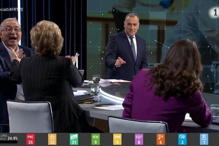 Los periodistas Pilar Rahola y Javier Sardà han sido protagonistas en la noche electoral catalana gracias a las fuertes discusiones, incluso a gritos, que han mantenido en el programa especial de TVE.