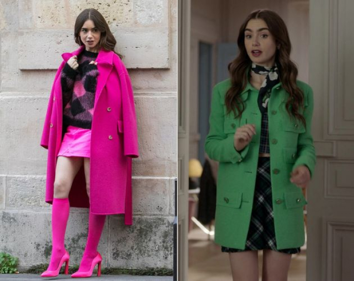 Lo más desconcertante del estilismo son las medias de rejilla. A día de hoy suelen utilizarse para estilizar las piernas y son las favoritas de artistas como Jennifer Lopez o Beyoncé para sus conciertos. Pero lo que está claro es que no entran dentro del imaginario del estilo parisino, ni del armario de Emily.