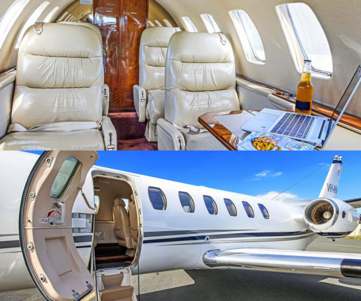 A pesar de ser más pequeño que otros modelos, el Cessna Citation V 560 incluye todos los lujos de un jet privado como asientos amplios de cuero y mesas ejecutivas en todas las plazas. Además, cuenta con acabados en madera de nogal, alfombra y cuarto de baño.