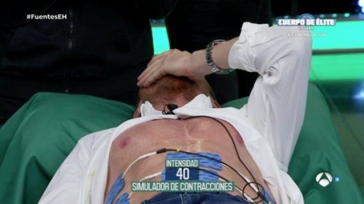 Rubio, que está esperando su tercer hijo, sometió a ambos a un simulador de contracciones con una máquina que permite experimentar el dolor de un parto real. Motos y Fuentes se picaron entre sí a ver quién aguantaba contracciones de más intensidad.