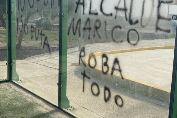 En concreto, en una de las paredes de cristales de una pista de pádel aparece escrito “maricón, hijo de puta, el alcalde roba todo”, algunas de estas palabras con faltas de ortografía, así como dibujos fálicos sobre el césped artificial. “Alcalde perro maricón”, se lee en otra de las pintadas. Además, en una pista han roto uno de los cristales.