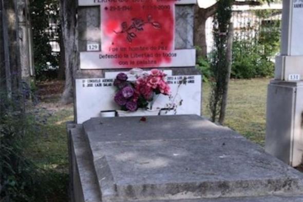 Arrojan pintura roja contra el panteón donde reposan las cenizas de Fernando Buesa