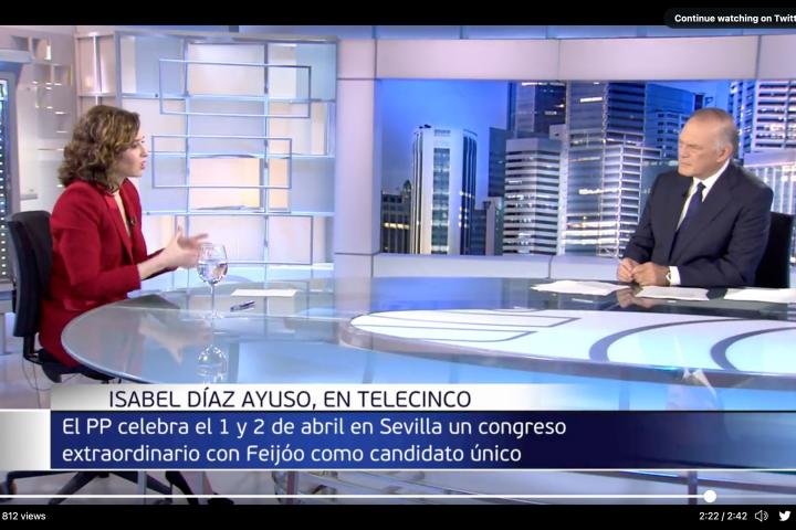La presidenta de la Comunidad de Madrid se ha pasado por Informativos Telecinco.