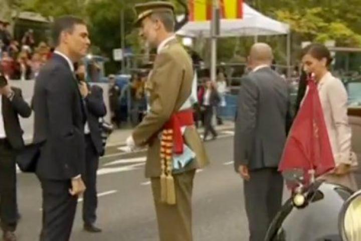 Pitos y abucheos a Pedro Sánchez a su llegada al desfile del 12 de octubre