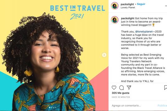 Fundadora de la red Young Travellers Network y cofundadora de Black Travel Alliance busca empoderar a los viajeros y aumentar la representación negra en la industria de los viajes.