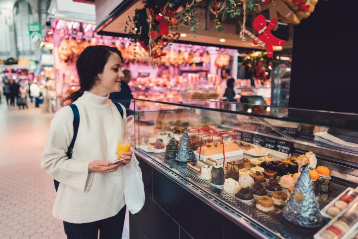 Una mujer visita los stands navideños en un supermercado.martin-dm via Getty Images