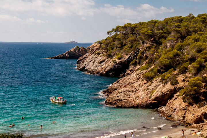 Aunque parezca imposible, pueden encontrarse calas en Ibiza libres de masificación. Cala Boix, en la zona de Santa Eulalia, es una pequeña playa que se encuentra en medio de un acantilado. Cuenta con la opción de reservar hamacas y, además de un chiringuito a pie de playa, también hay un restaurante donde disfrutar de arroces y paellas.