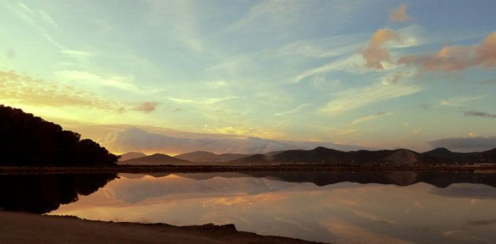 Una tarde me llamó una amiga por teléfono y me dijo que le habían hablado de un mirador desde donde se veían los atardeceres más increíbles de Ibiza. Al parecer, el lugar estaba en lo alto de una colina dentro del Parque natural de ses Salines. La gracia es que, al caer el sol sobre las piscinas de las salinas, estas reflejan la luz del atardecer, creando un efecto espejo espectacular. Mi amiga me preguntó que si la acompañaba en busca del mágico mirador, y tras ver esta increíble foto, le dije que sí.
