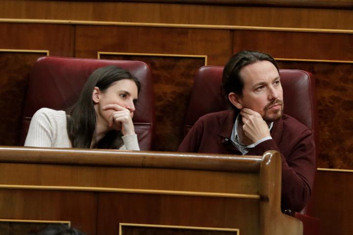 El líder de Unidas Podemos, Pablo Casado, y la diputada Irene Montero.