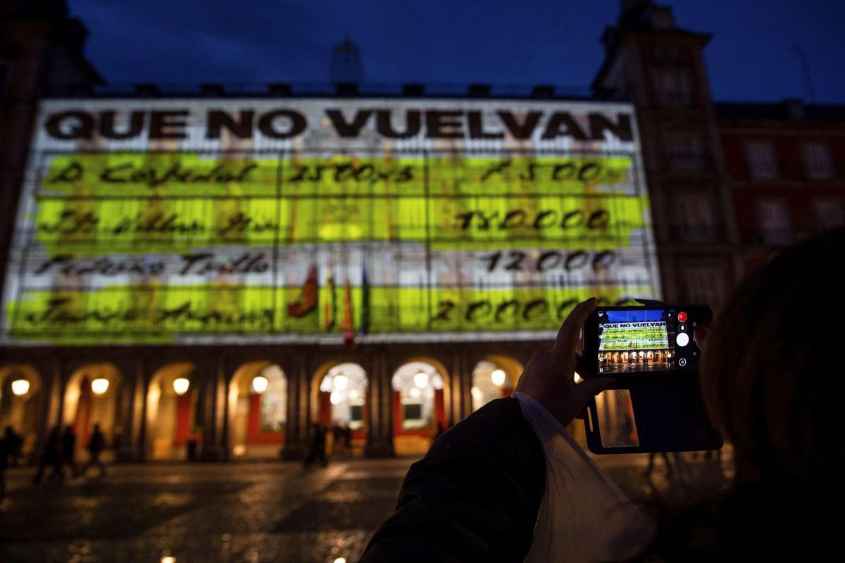 La proyección de estas imágenes forma parte de la campaña diseñada por Podemos con el lema “Que no vuelvan”, que la formación ha comenzado este domingo a difundir en la redes sociales acompañada de un vídeo en blanco y negro