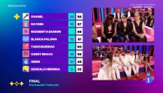 Chanel se llevó la máxima puntuación del jurado (cuya opinión pesaba el 50% sobre el resultado final) y las gallegas, las más altas del voto demoscópico y del televoto, con lo que el palmarés quedó así: