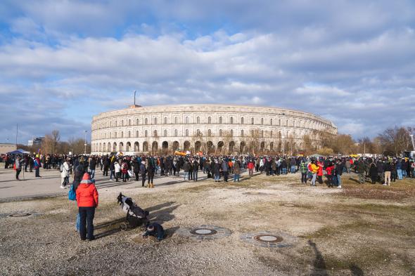 Unas 4.000 personas, según la Policía, se han concentrado este domingo en el estadio de Nuremberg, construido durante el Tercer Reich para albergar los congresos del partido nazi.