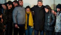Los padres de Julen, a la izquierda de la imagen, abrazados por el padre de Mariluz Cortés, Juan Jose Cortes, durante una vigilia.