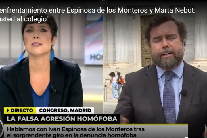 La periodista Marta Nebot ha mantenido este jueves un tenso enfrentamiento con Iván Espinosa de los Monteros, portavoz de Vox en el Congreso, en el programa de Telecinco Ya es Mediodía.