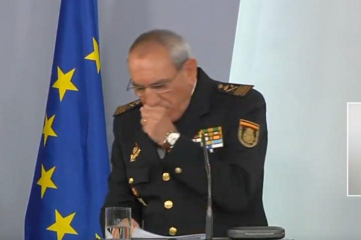 El comisario ha comenzado a carraspear y a toser durante su comparecencia, llevándose la mano a la boca (en lugar de toser en el codo, como recomiendan las autoridades sanitarias).