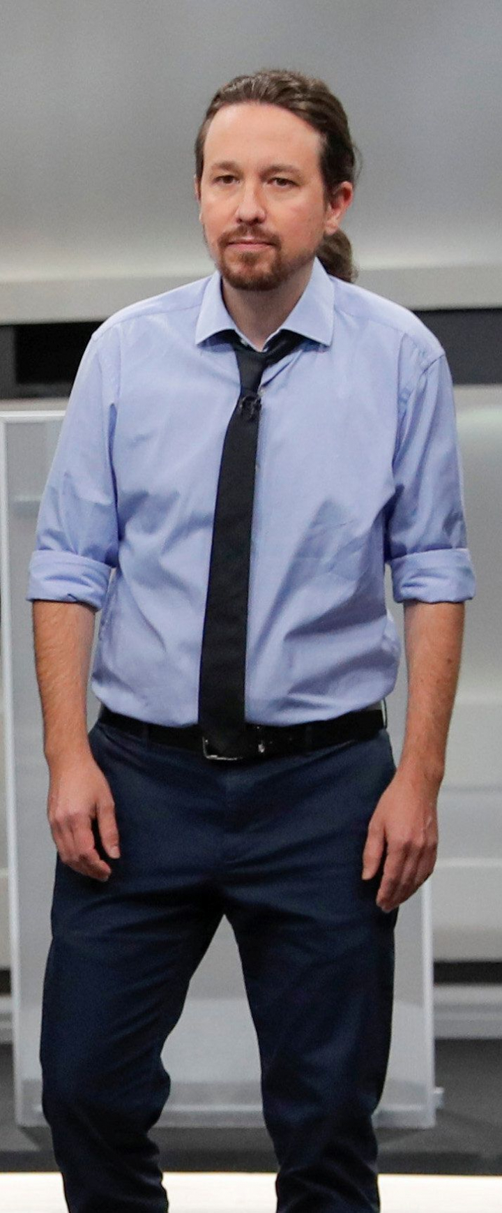 El líder de Unidas Podemos evitó el traje pero sí apostó por una corbata negra, con el nudo muy flojo, que combinó con camisa azul con las mangas remangadas y pantalones chinos marinos.