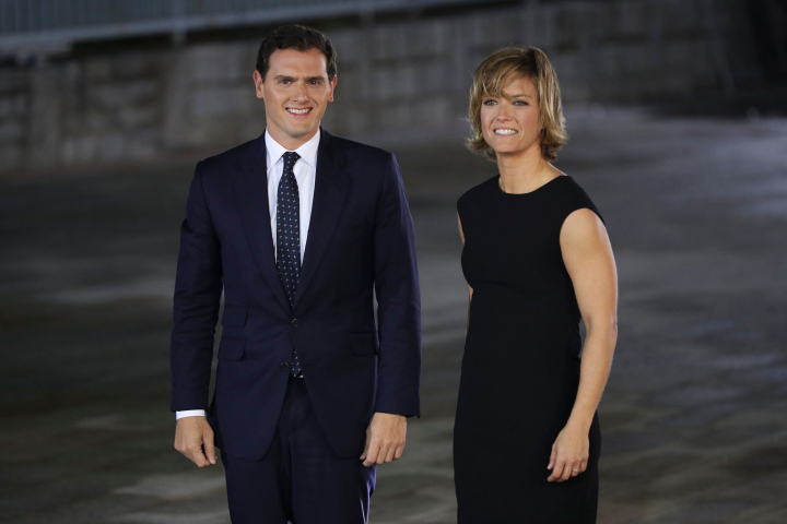 Con total look azul marino llegó precisamente Albert Rivera. El líder de Ciudadanos volvió a intentar parecerse a Macron, con camisa blanca y corbata con pequeños motivos blancos, un estilismo prácticamente calcado al de otros debates.