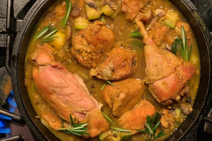 Pollo guisado con hierbas y toque de especias