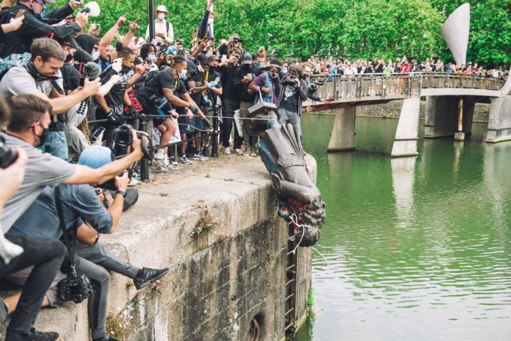 En junio de 2020, los manifestantes de Black Lives Matter arrancaron una estatua de Edward Colston en Brístol durante las protestas por la muerte de George Floyd en junio de 2020 y la lanzaron al río.