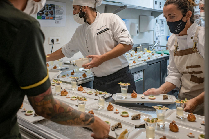 Animación y muchas ganas de probar cosas nuevas movían a los comensales que se apuntaron la noche del 22 de octubre a esta particular experiencia, la segunda dentro de las cenas a cuatro manos que celebra Paradores, tras la que los hermanos Torres ofrecieron en Aiguablava en septiembre.