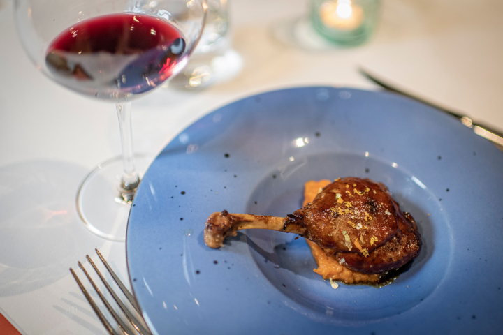 La parte salada terminaba con un crujiente muslo de pato de La Albufera con cítricos y boniato especiado, que homenajeaba ese producto emblemático de proximidad y la capacidad del equipo de Alcarazo para actualizar la cocina tradicional de la zona.