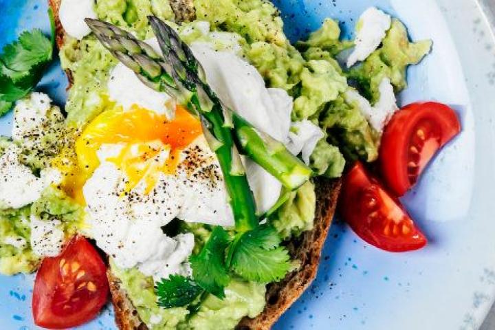 Sándwich de aguacate, huevo escalfado, tomate y espárragos.Claudia Totir via Getty Images