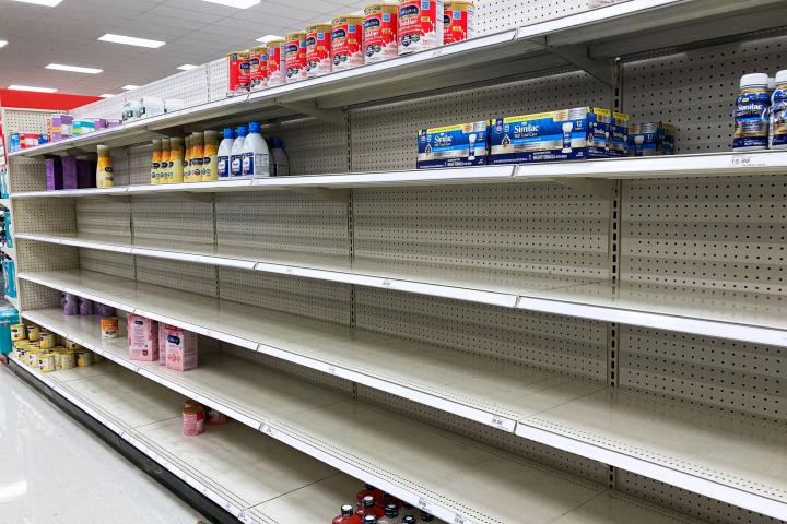 Estados Unidos pasa días complicados. Para millones de padres en todo el país, encontrar leche de fórmula, líquida o en polvo, para alimentar a sus bebés se ha convertido en una verdadera odisea. En la mayoría de los supermercados, las estanterías están casi vacías en la sección infantil, lo que ha obligado a muchas familias a tener que ir de un lado para otro o hacer encargos por internet, donde ya se están registrando casos de fraude y de subida de precios.
