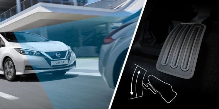 El nuevo Nissan LEAF todavía incluye un pedal de freno, aunque solo se utiliza cuando el conductor quiere frenar de forma más agresiva o necesita una parada de emergencia. El pedal eléctrico se activa a través de un botón en el menú central y es probable que quieras mantener este modo durante la mayor parte de tu conducción.