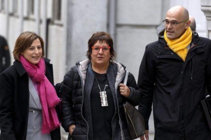Carme Forcadell, Dolors Bassa y Raül Romeva, el pasado 23 de marzo a su llegada al Tribunal Supremo.Getty Images