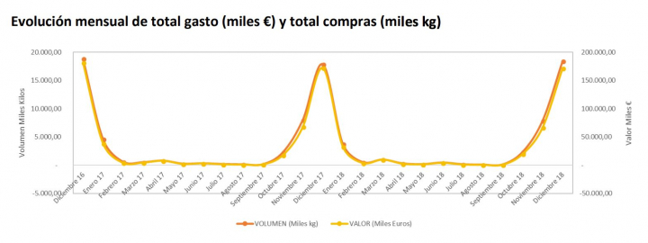 Los hogares españoles consumieron en total 35 millones de kilos el año pasado y se dejaron 316 millones de euros en adquirirlos. Los polvorones y los mantecados son quienes tienen mayor importancia en la cesta de la compra, al representar el 29% del volumen total, seguidos muy de cerca por los turrones, que ocupan el segundo lugar y representan el 28%.