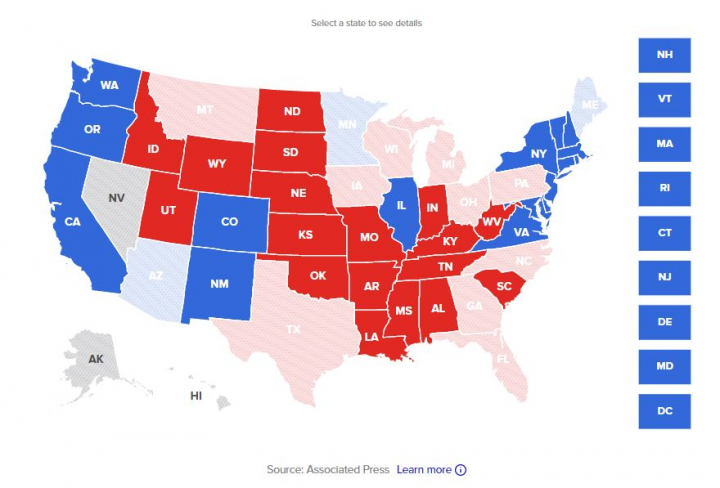 Y en medio esa maraña de colores, en la zona oeste del país y parapetada por el azul de California y el rojo de Utah, se encontraba Nevada, en gris, y con un 0% de los votos escrutados.