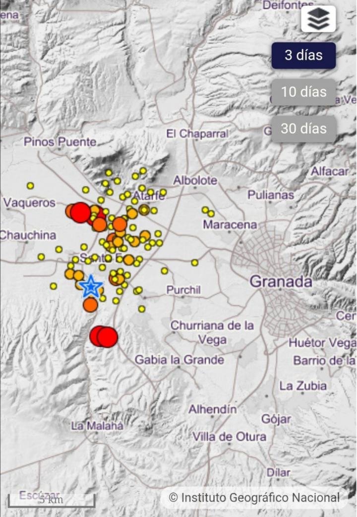Según el Instituto Geográfico Nacional (IGN), desde principios de diciembre se registran una serie de terremotos superficiales al noroeste de la ciudad de Granada, en el entorno de las localidades de Atarfe, Pinos Puente y Santa Fe. Se trata de terremotos superficiales, con una profundidad menor de 10 kilómetros y de magnitudes mayoritariamente menores de 2,5.