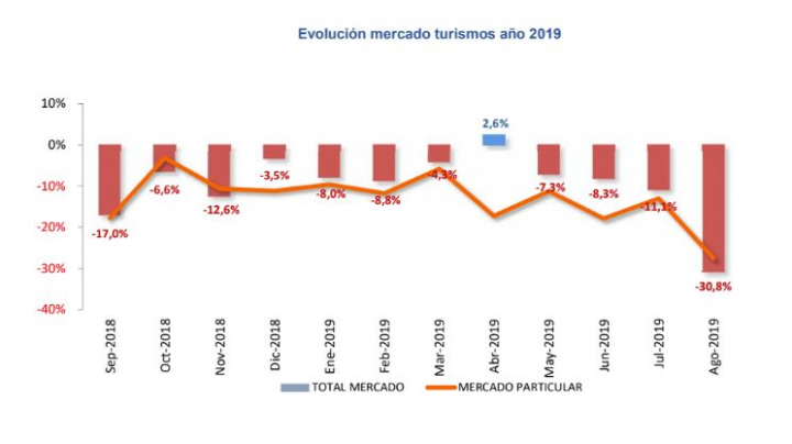 Pero, ¿por qué ha ocurrido esto? La principal razón que está detrás de este descenso es que se compara de manera irreal con el mes de agosto de 2018, sin tener en cuenta que aquel fue el mejor mes de agosto para los concesionarios de la historia. “Un mes anormal”, confiesan desde las patronales.