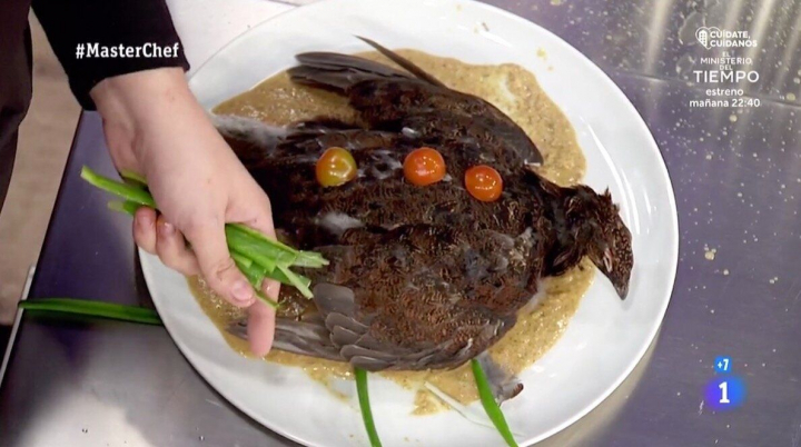 La concursante tuvo 20 minutos para pelar y cocinar una perdiz, pero se negó y decidió sacar de quicio al jurado, con el que ya tenía una relación tensa. Llegó a decir: ”¿Me queréis ver aquí quitando plumas como una perra? No me voy a poner aquí a arrancar plumas para daos la satisfacción”. Y sin vacilar, preparó lo que se aprecia en esta imagen: