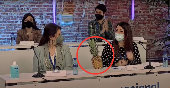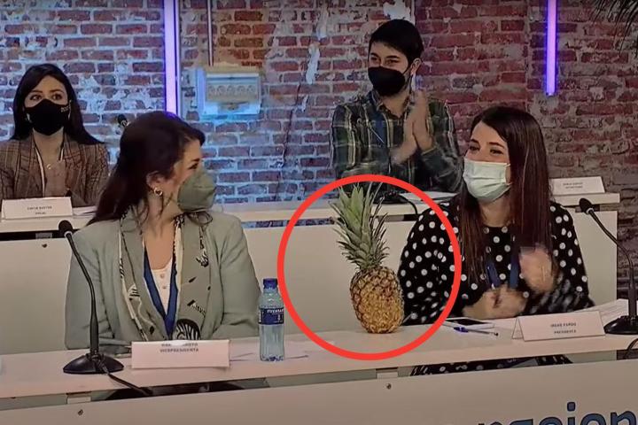 “Y yo le preguntaba, ¿y esto? ¿Qué es la piña? Y dice, pues esto es una cosa que nos inventamos en las primarias del PP, toda Nuevas Generaciones, porque fuisteis una piña para apoyarme en toda España y os lo agradezco, muchísimas gracias. Ahora yo soy parte de vuestra piña... Espero”, indicó.