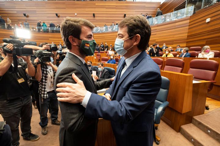 El ‘popular’ Alfonso Fernández Mañueco ha salido investido en las Cortes de Castilla y León como presidente de la autonomía, gracias a un acuerdo con los de Santiago Abascal, que entrarán en el Ejecutivo autonómico ocupando la Vicepresidencia y tres consejerías. Y todo ello ya con Alberto Núñez Feijóo como líder de los populares, que no ha acudido a la sesión, en tanto que sí lo ha hecho el líder de Vox, el gran ganador en términos políticos de esta negociación.