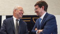 Mañueco e Igea han cerrado con un apretón de manos y un abrazo la firma del acuerdo de gobierno, que permite sumar los 29 procuradores del PP y los 12 de Cs, que dan los 41 escaños en los que está la mayoría absoluta que garantizará la investidura, previsiblemente a principios de la semana próxima.