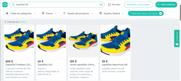 Por 650 euros se ven una talla 42 en Wallapop y su dueño utiliza el “colección limitada” como reclamo. Lidl abrió la venta en su página web a las 09:00 horas del miércoles 14 de octubre. Había dos modelos: el de hombre (de tallas 41 a 46) y el de mujer (de la 37 a la 40). Ambos, por 19,99 euros. Este vendedor pretende sacarle un beneficio de 630 euros.