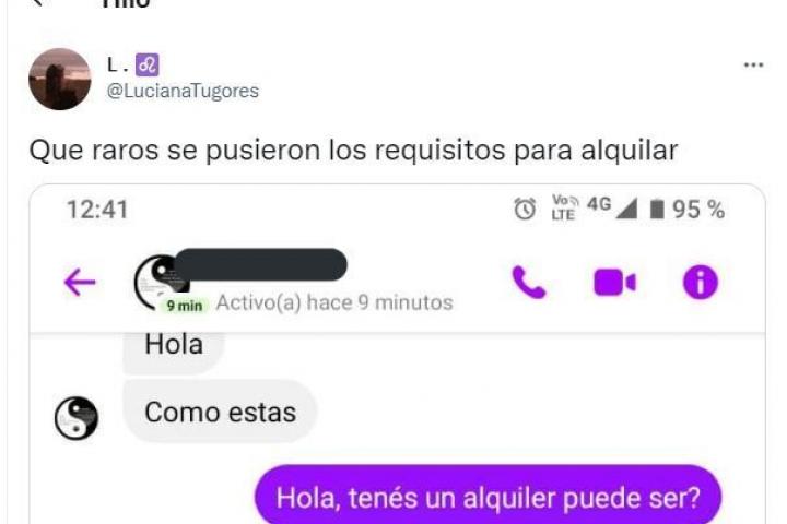 Pero lo que ha compartido la usuaria de Twitter @LucianaTugores va un poco más allá de lo habitual. La tuitera ha subido un pantallazo de una conversación con un supuesto casero que es toda una fantasía.
