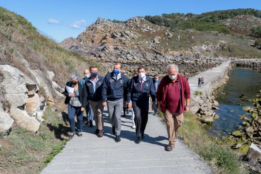 Feijóo paseando por la Islas Cíes, acompañado del ministro de Agricultura, Luis Planas.