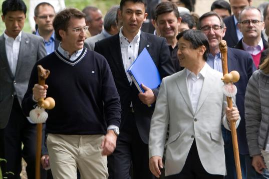 Feijóo con el por aquel entonces príncipe japonés Naruhito, en 2013, realizando un tramo del Camino de Santiago.