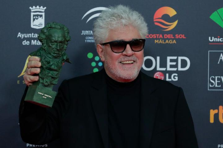 Pedro Almodóvar posa con el Goya a Mejor película por 'Dolor y Gloria' en la edición de 2020 en Málaga (AP Photo/Manu Fernandez)ASSOCIATED PRESS