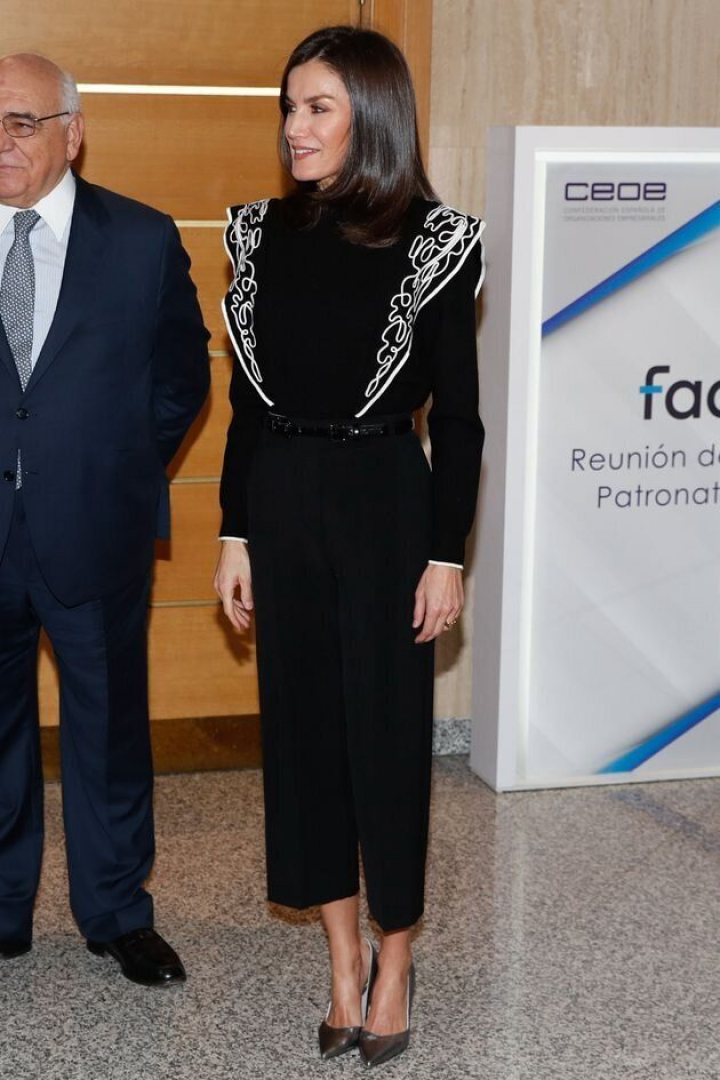El llamativo jersey que se ha puesto Letizia este martes para acudir al evento es lo único de todo el conjunto que les chirría mínimamente: “Debido a que todavía está apretado en la cintura, los volantes anchos en los hombros causan proporciones ligeramente distorsionadas”.