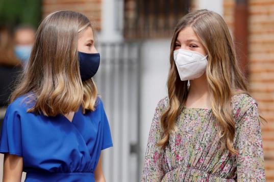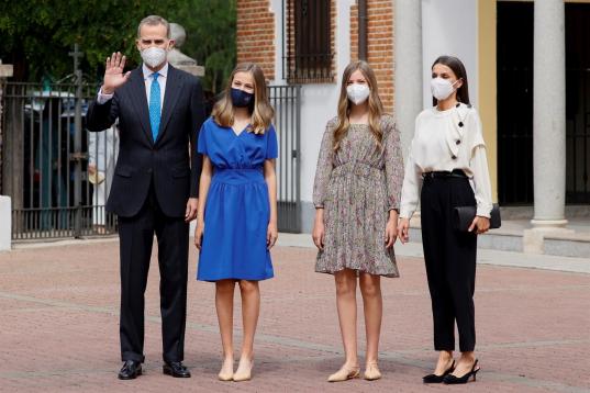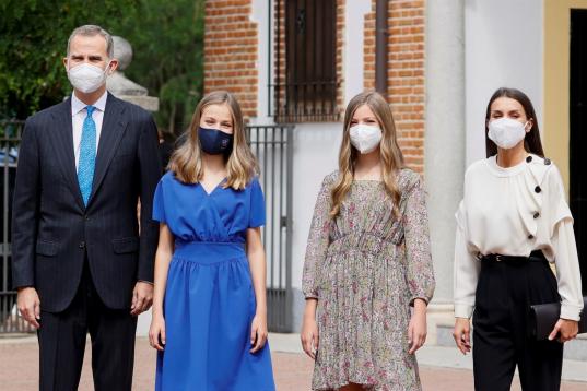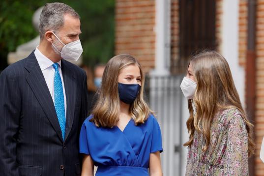 La heredera al trono acudió junto a sus padres, Felipe VI y la reina Letizia, y su hermana, la infanta Leonor, quienes posaron ante las cámaras pese a que la ceremonia tenía un carácter privado y no podían tener más invitados.