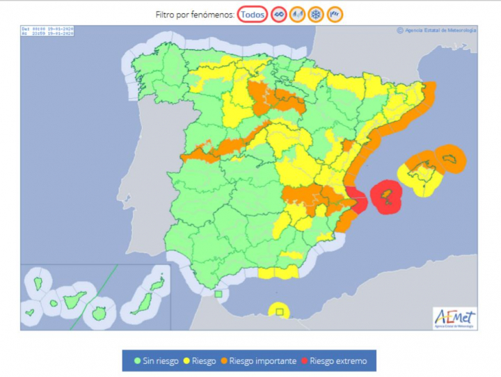 Además de las vías comarcales y locales que puedan verse afectadas por este fenómeno también podrían presentar complicaciones las de alta capacidad, autovías y autopistas.