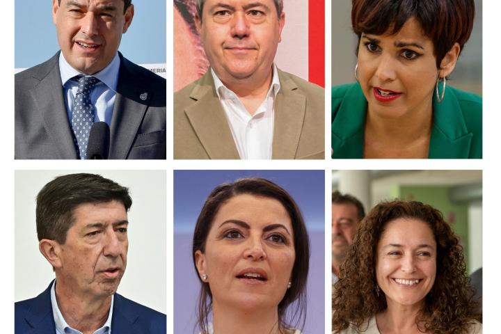 Juan Espadas (PSOE), Juan Manuel Moreno (PP), Juan Marín (Cs), Inmaculada Nieto (Por Andalucía), Macarena Olona (Vox) y Teresa Rodríguez (Adelante Andalucía). Todos contra todos. Esto es todo lo que tienes que saber sobre el acto de esta noche.