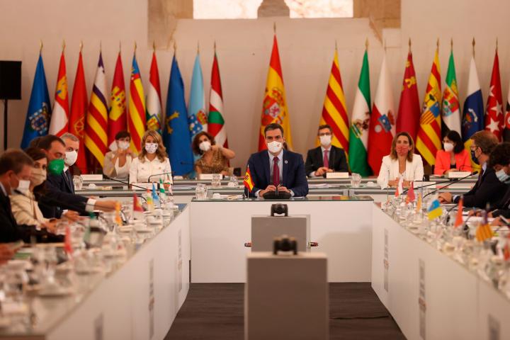 El presidente del Gobierno, Pedro Sánchez, ha trasladado a los presidentes de las comunidades autónomas que los gobiernos regionales van a gestionar hasta el 55% del total de fondos europeos para la recuperación económica que España recibirá en 2021 para salir de la crisis.
